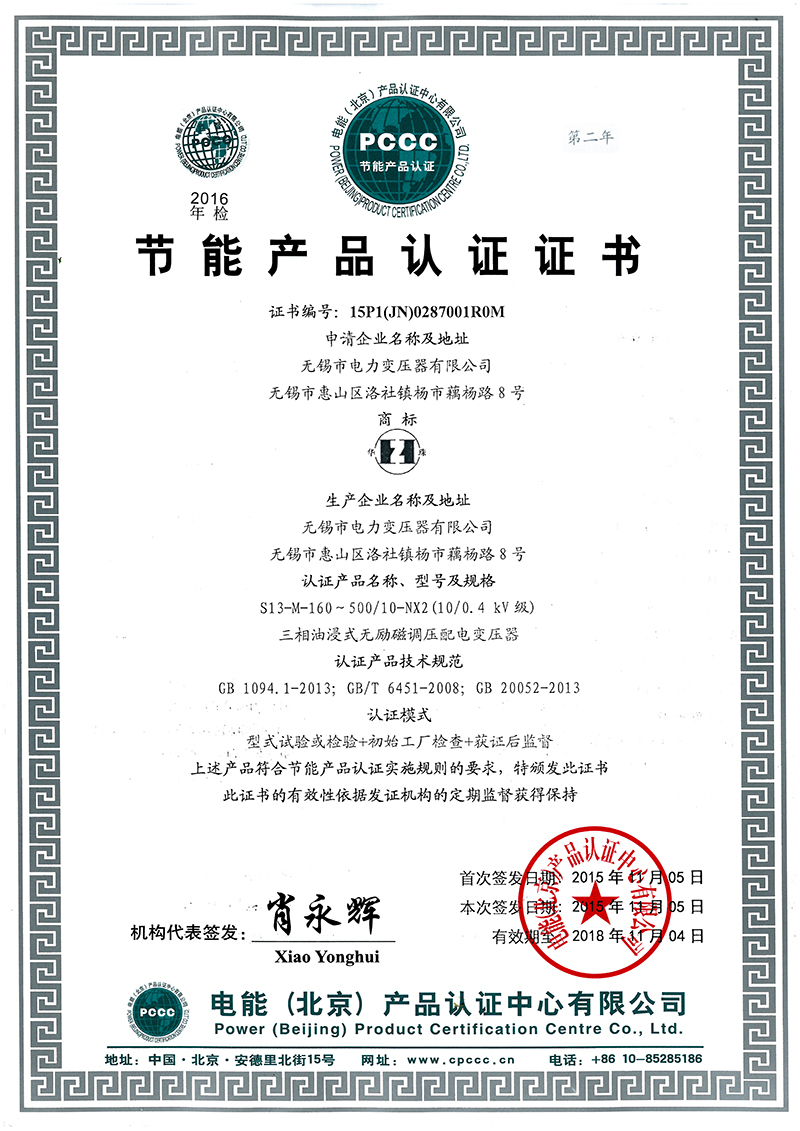 • 油變節(jié)能產(chǎn)品認(rèn)證證書(shū)